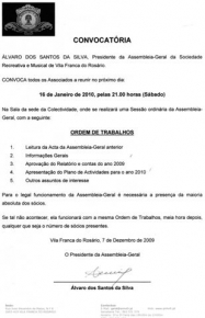 Na Sala da sede da Colectividade, onde se realizará uma Sessão ordinária da Assembleia-Geral, com a seguinte: